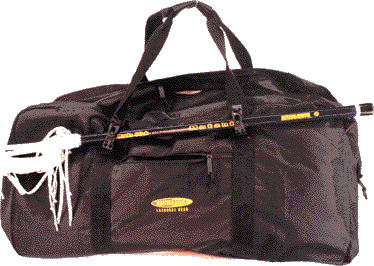 Extra-large rectangular lacrosse gear bag with one side pocket, dual hand straps and adjustable sling strap. Features the new - improved StickClip for quick attachment. Made of heavy weight materials and construction, with Haute Stick stitched logo. Available in black or green. 36x18x18
