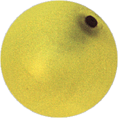 This heavily solorized photo is of the newest addition to the OddBall line of balls from Haute Stick. A tube of glow fluid is inserted into the hole in the end of the ball. This glow tube, once activated will glow for more than 8 hours.